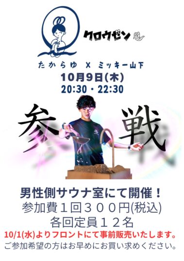 アウフグース 【定期イベント】西千葉ビバークランド🐶 レジェンドゆう アウフグースイベント🔥 毎月第3木曜日 2025.10.02 sauna-ai 0 アウフグースサウナイベント千葉市稲毛区千葉県関東地方